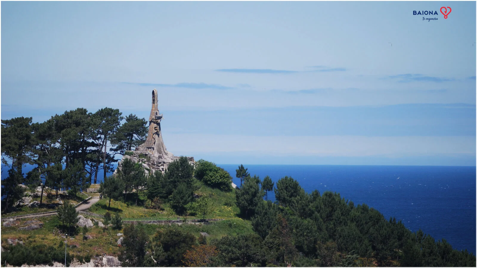 The Virxe da Roca (Virgin or Lady of the Rock) is an iconic statue in Baiona inaugurated in 1930 which offers its visitors a breathtaking panoramic view of the town. Located at the top of Monte de San Roque hill, reaching an elevation of 100 meters above sea level. Inside this magnificent granite stone monument built by Antonio Palacios, there is a spiral staircase that leads to a viewpoint within the boat that the Virgin is holding. From there, you can admire a spectacular landscape with the majestic Monterreal Fortress taking center stage against a backdrop of beauty.