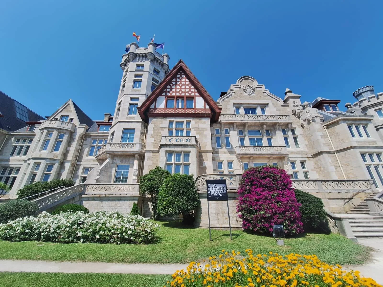As we move to the Magdalena Palace, located on the picturesque Magdalena Peninsula, you´ll be captivated by the stunning views of the sea and the surrounding landscapes. The palace itself, a grand and regal building, was originally constructed as a summer residence for the Spanish royal family in 1911. The palace was used by King Alfonso XIII and Queen Victoria Eugenia and became a symbol of the Spanish monarchy´s connection to the region. Surrounded by lush pine forests and extensive gardens, the estate offers a glimpse into the lives of Spain´s royal family. Inside, you´ll find quaint rooms furnished in a style that reflects the early 20th century, with many rooms still preserving their original decoration.
