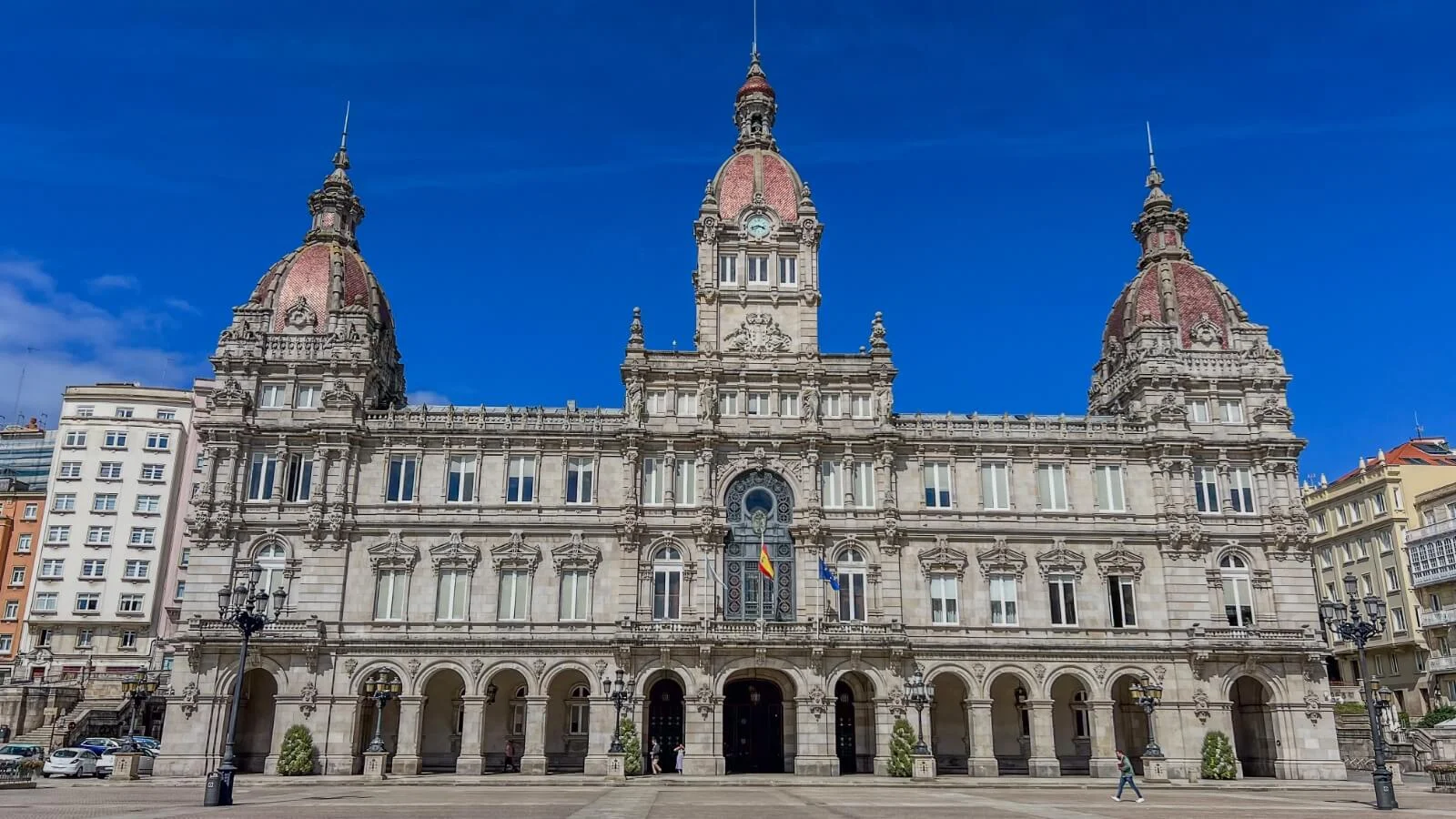 El casco antiguo de A Coruña está bien conservado y se concentra alrededor de la Praza de María Pita, con impresionantes edificios unificados con columnas, incluido el elegante Ayuntamiento y una estatua de María Pita sosteniendo una lanza. Es una heroína local que ayudó a repeler el ataque de las tropas inglesas de Sir Francis Drake en 1589, matando a muchos soldados ingleses en el proceso.